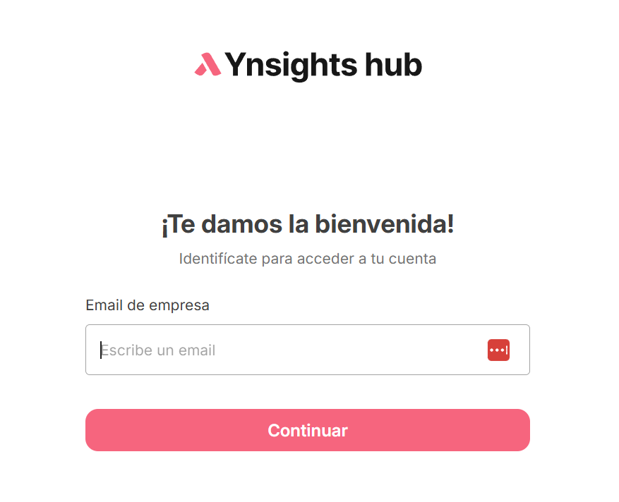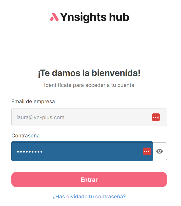 Una vez que hemos clicado en “Continuar”, nos aparece la opción de meter la contraseña. Una vez introducida la contraseña, al clicar en “Entrar”. procederemos a entrar en la Home de Ynsights Hub